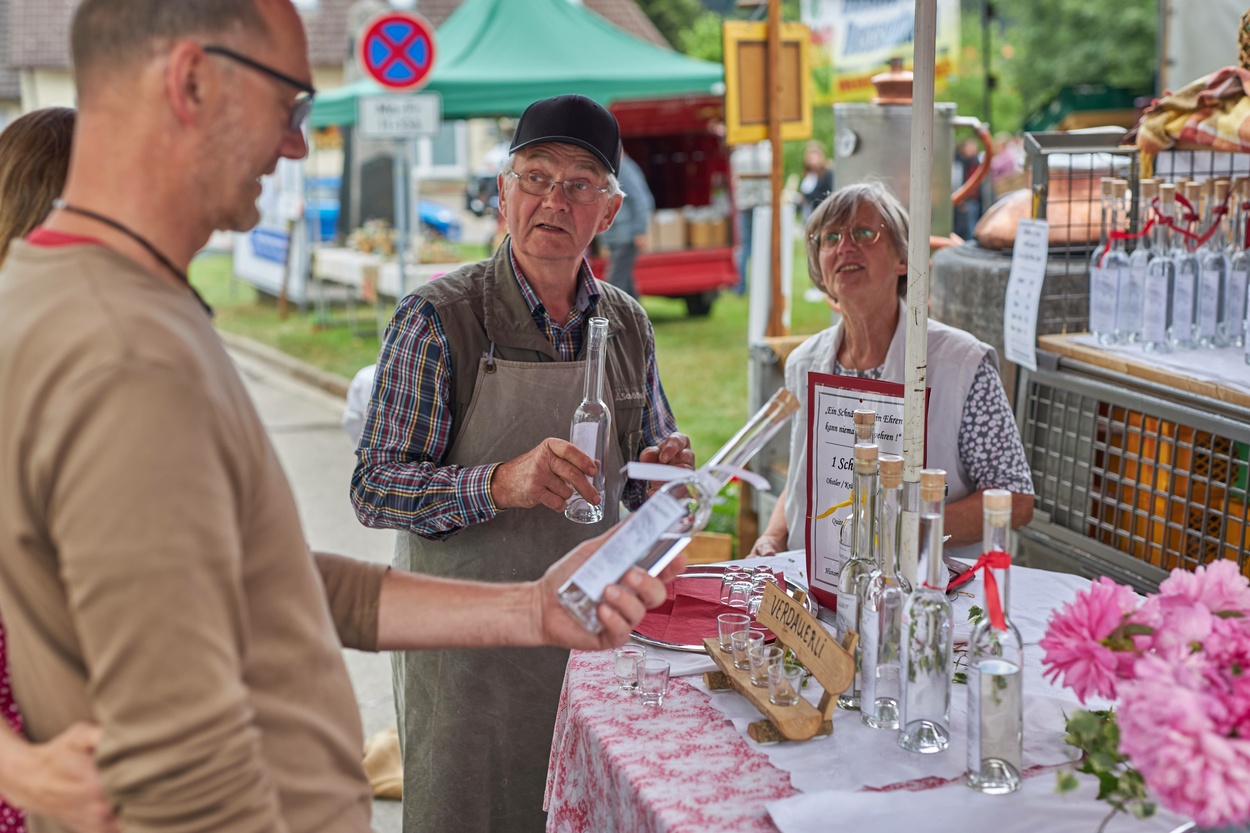 Angeboten werden unter anderem Imkerprodukte, Wildspezialitäten, Spirituosen, handgefertigte Keramik und Holzarbeiten sowie besondere Produkte aus Alpakawolle.