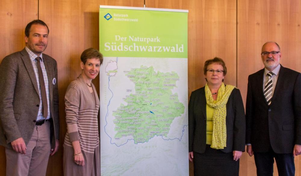 v.l.n.r.: Roland Schöttle (Geschäftsführer Naturpark Südschwarzwald), Landrätin Marion Dammann (Vorsitzende Naturpark Südschwarzwald), Bürgermeisterin Hannelore Reinbold-Mench (stellvertretende Vorsitzende Naturpark Südschwarzwald) und Regierungs-Vizepräsident Klemens Ficht (Mitglied im Gesamtvorstand Naturpark Südschwarzwald).